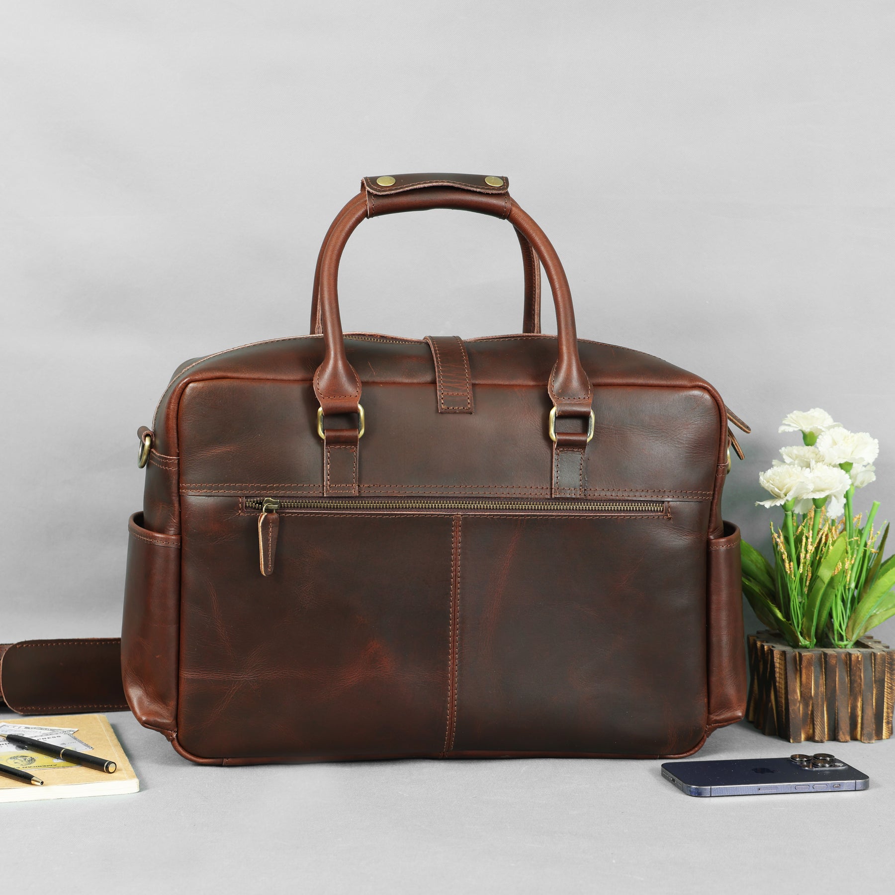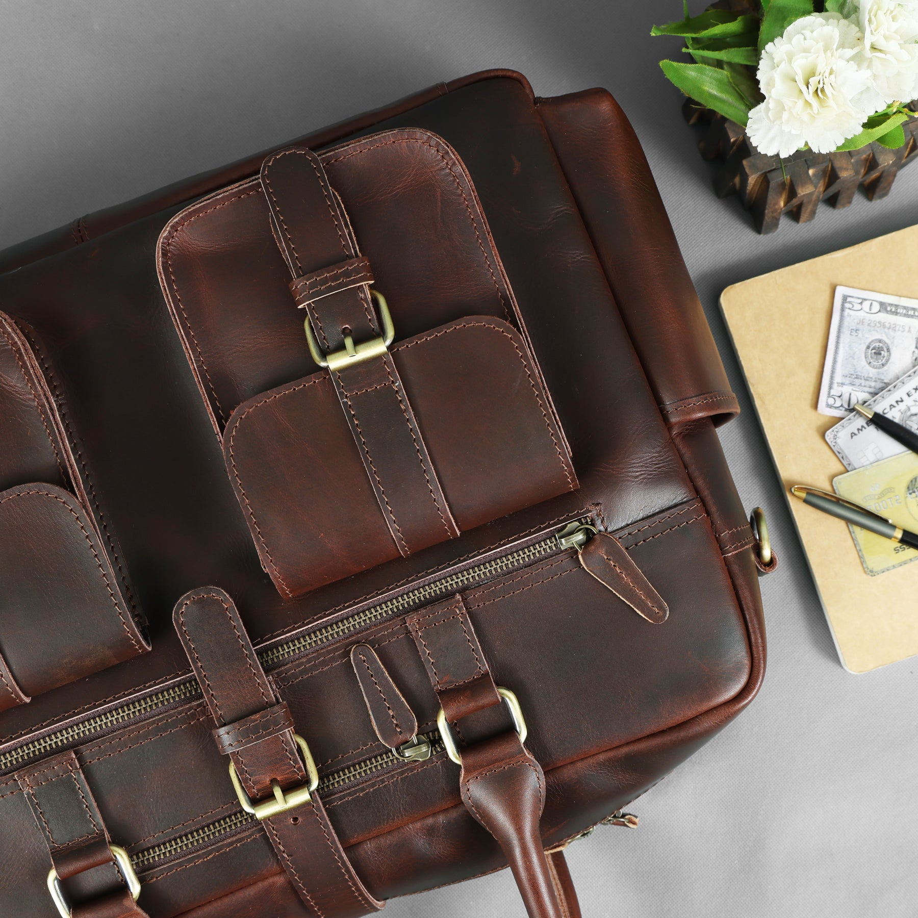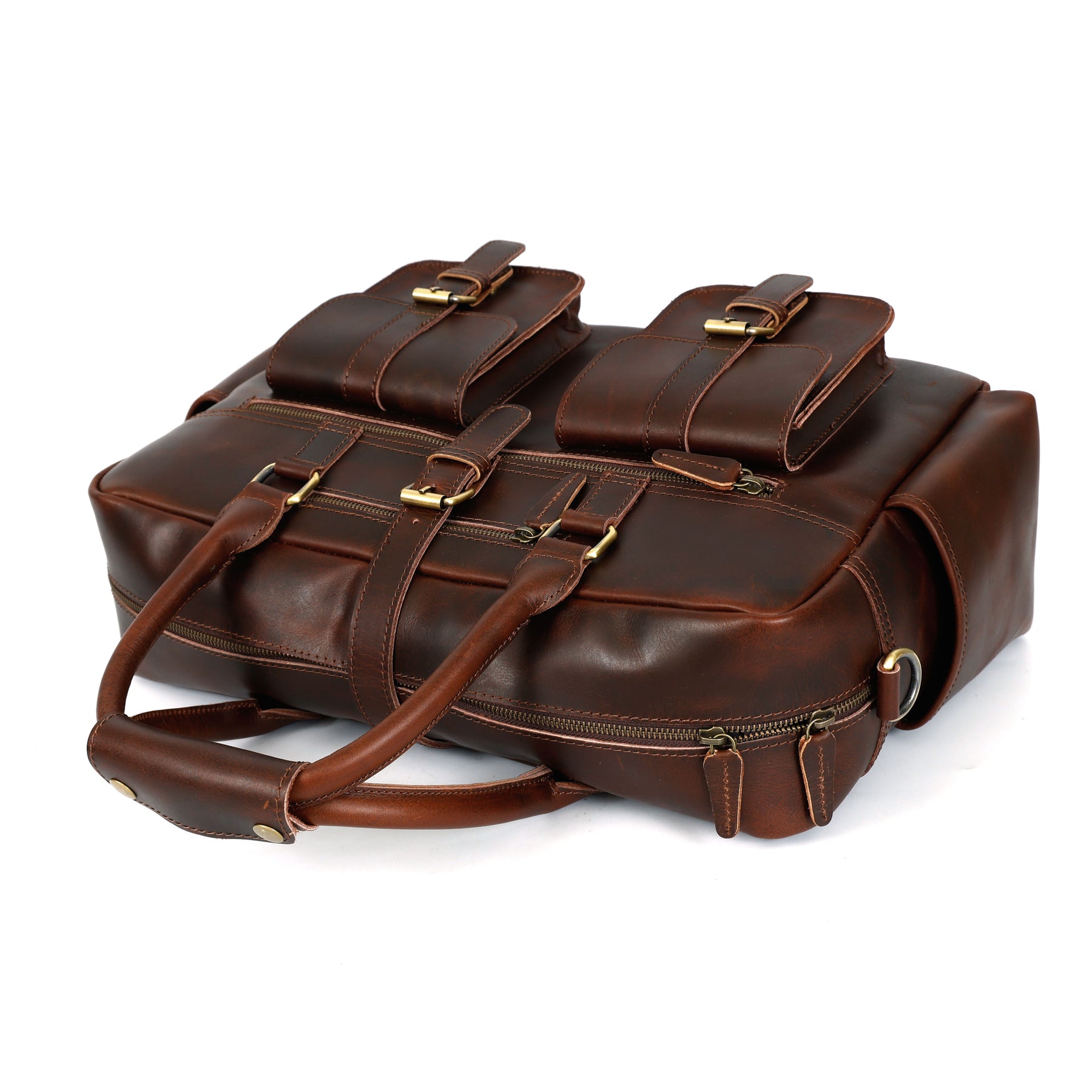 The Haven Buffalo Leather Briefcase combines timeless elegance with everyday practicality. Hand-finished from premium buffalo leather, this sophisticated bag adapts seamlessly to any professional setting while developing a rich patina over time. Designed with purpose, it features a secure front zip pocket, cushioned laptop compartment, and cloth lined interior giving you organized storage for all your essentials. Invest in a briefcase that works as hard as you do and looks better doing it.