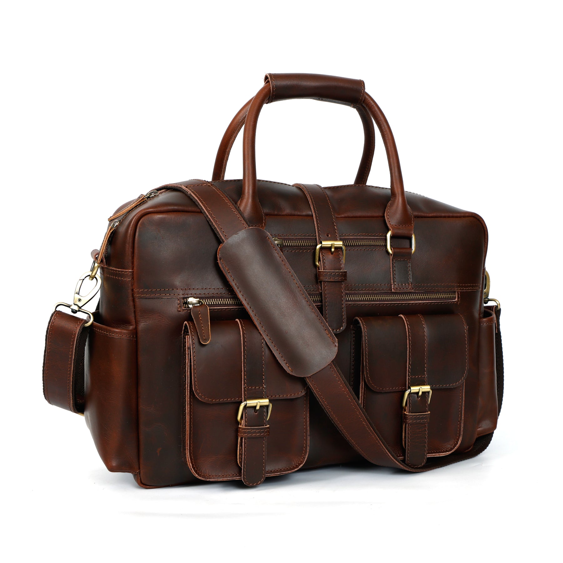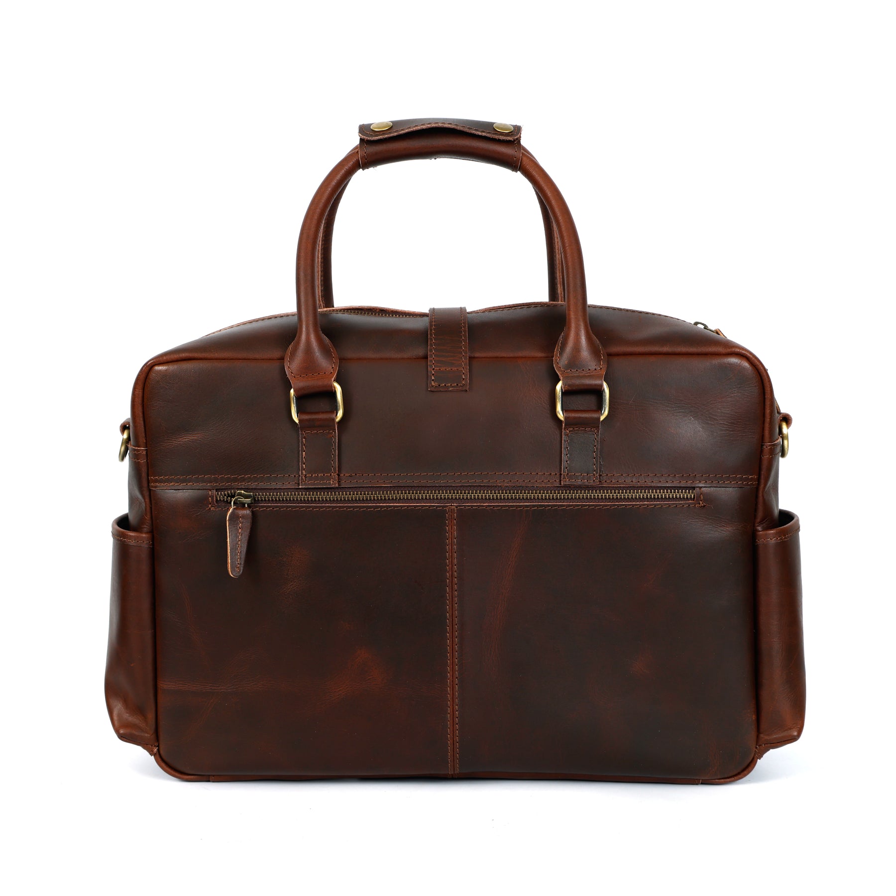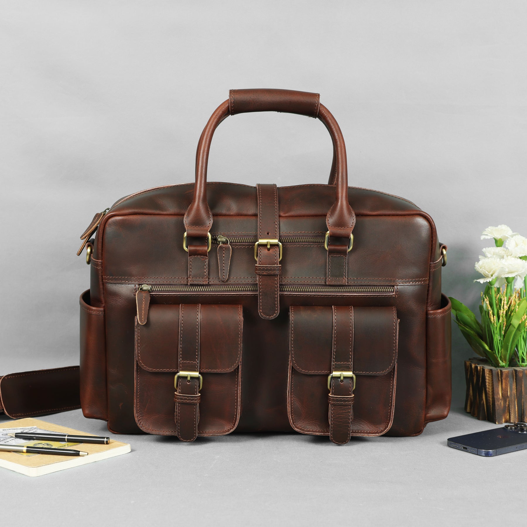 The Haven Buffalo Leather Briefcase combines timeless elegance with everyday practicality. Hand-finished from premium buffalo leather, this sophisticated bag adapts seamlessly to any professional setting while developing a rich patina over time. Designed with purpose, it features a secure front zip pocket, cushioned laptop compartment, and cloth lined interior giving you organized storage for all your essentials. Invest in a briefcase that works as hard as you do and looks better doing it.
