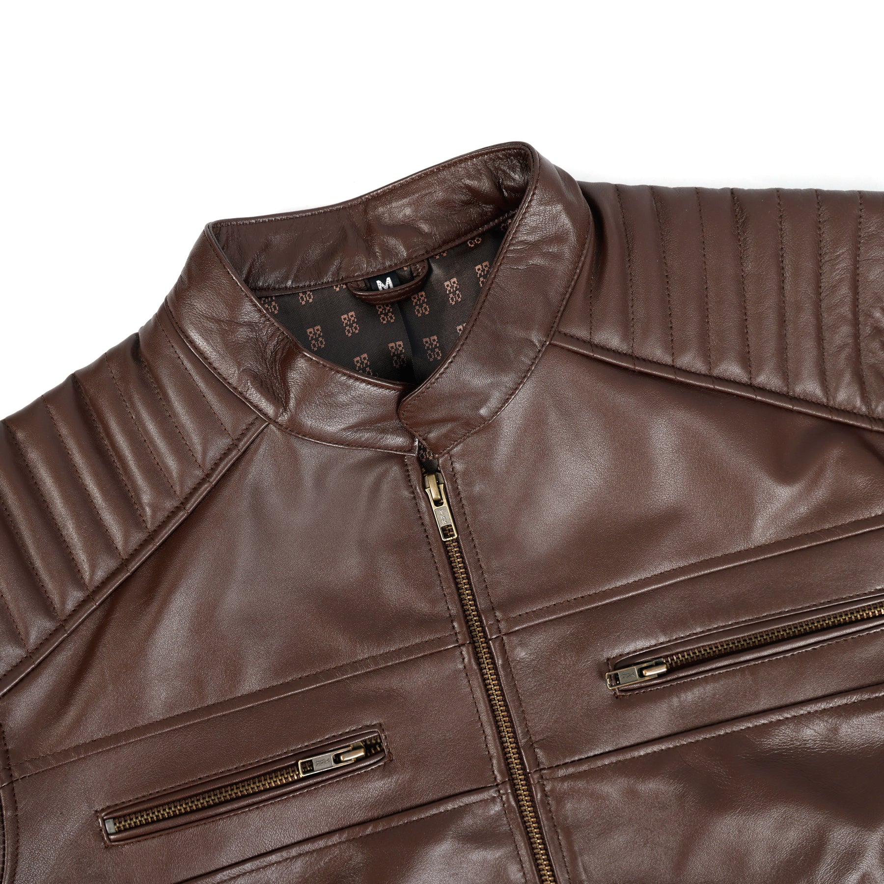 Stylish padded panels on the shoulders and upper arms add structure and a distinctive moto-inspired character.