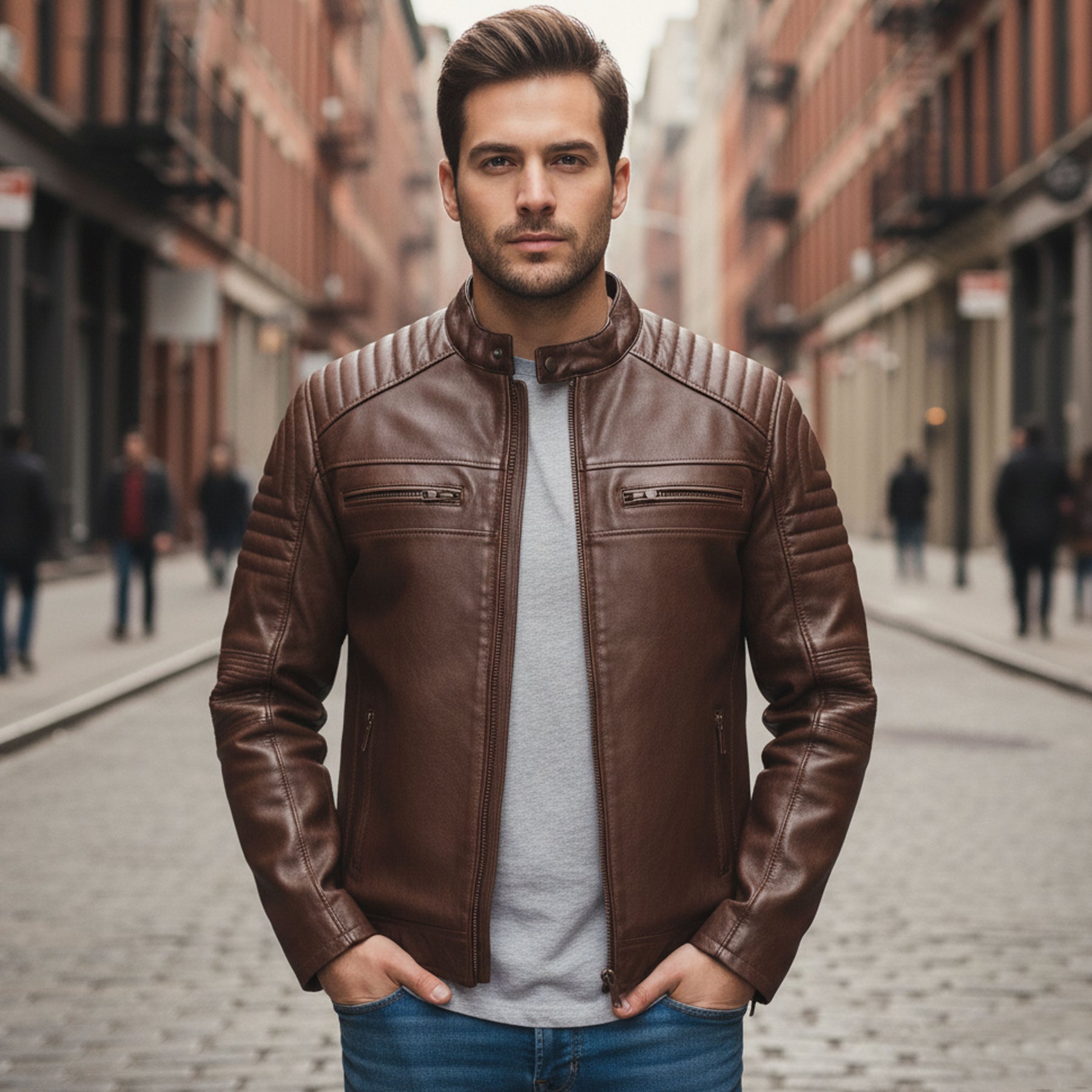 Elevate your wardrobe with the Axel handmade brown sheep leather jacket. Crafted for those who value durability, comfort, and timeless style. Made from premium full-grain sheep hide, this jacket offers a rich texture, natural toughness, and a refined modern silhouette.
