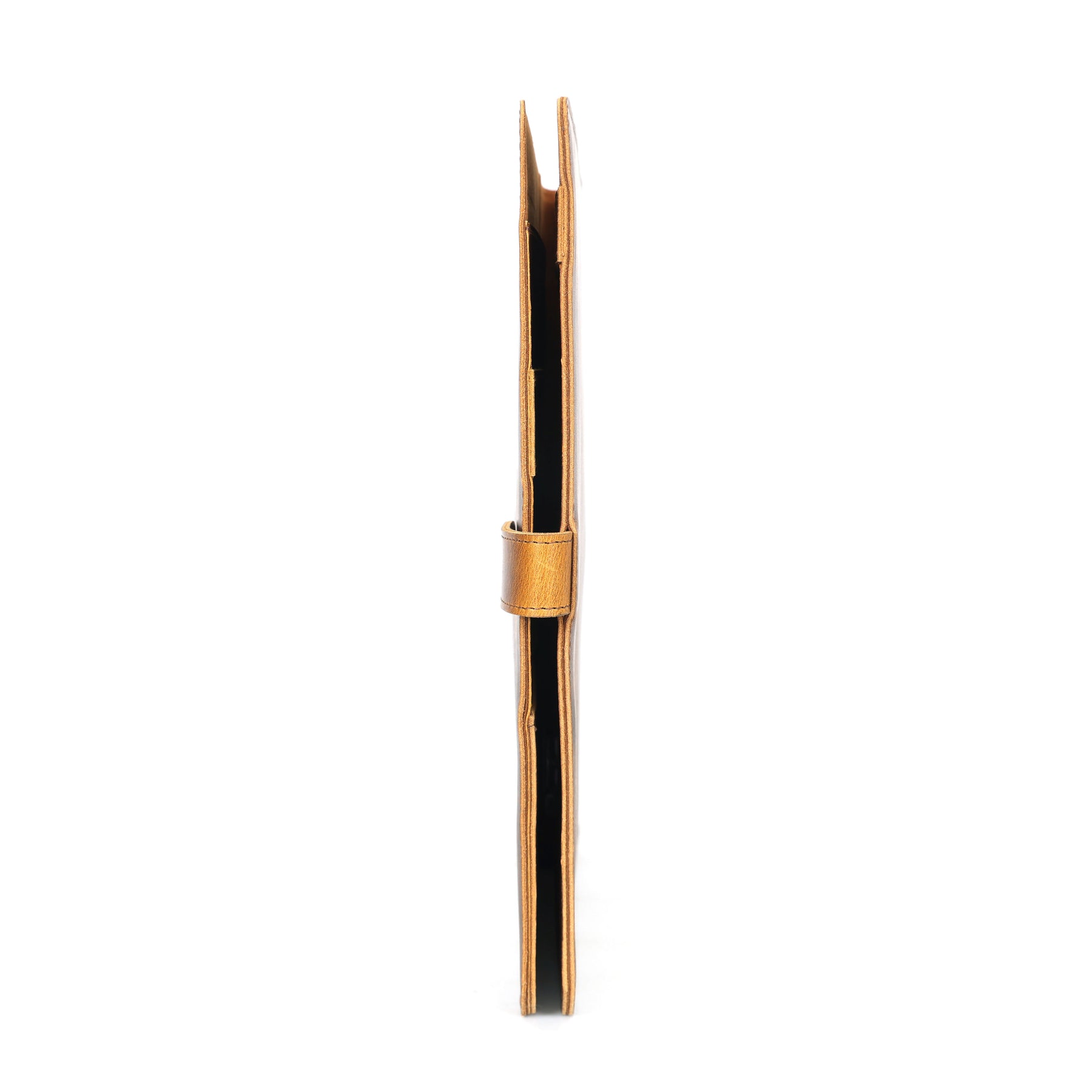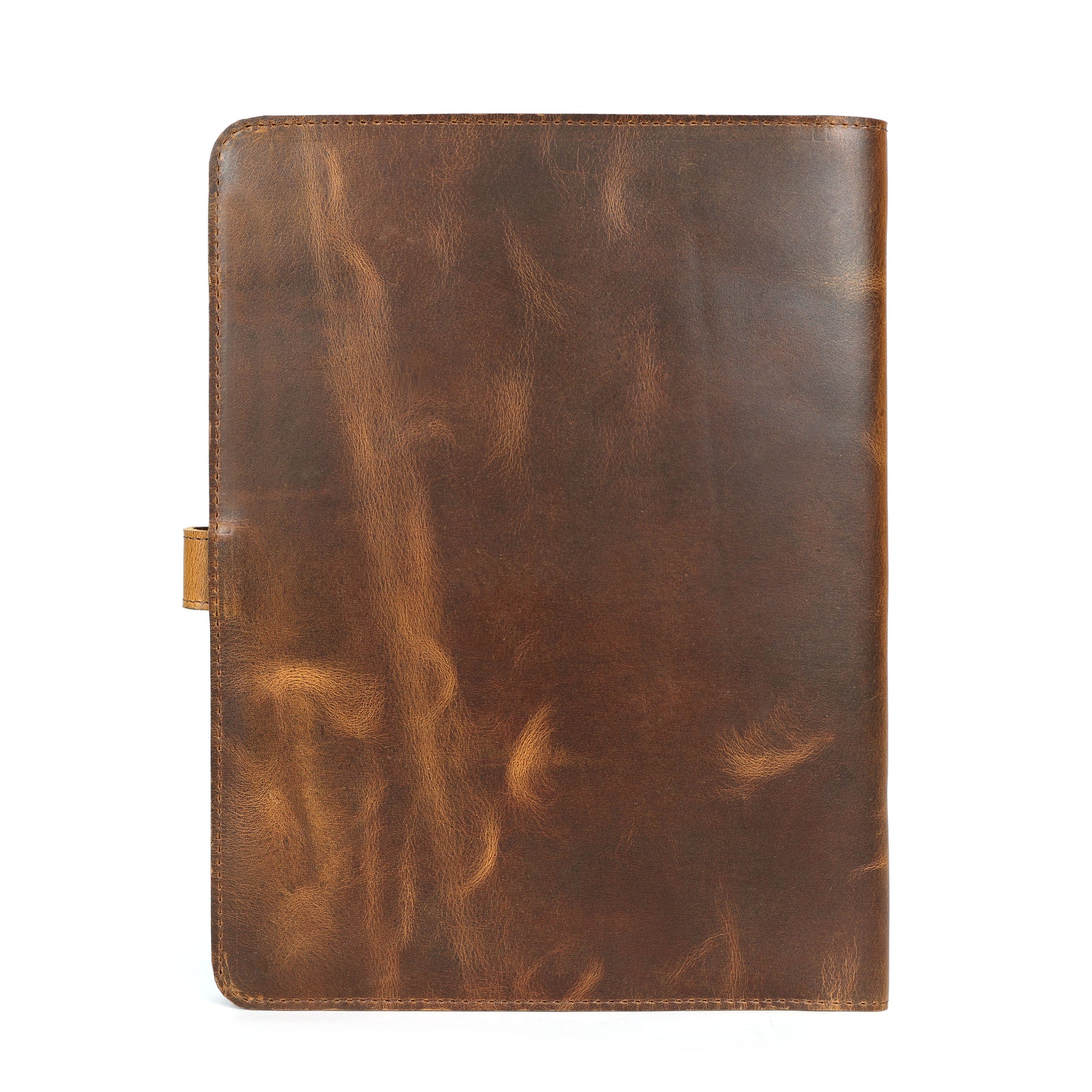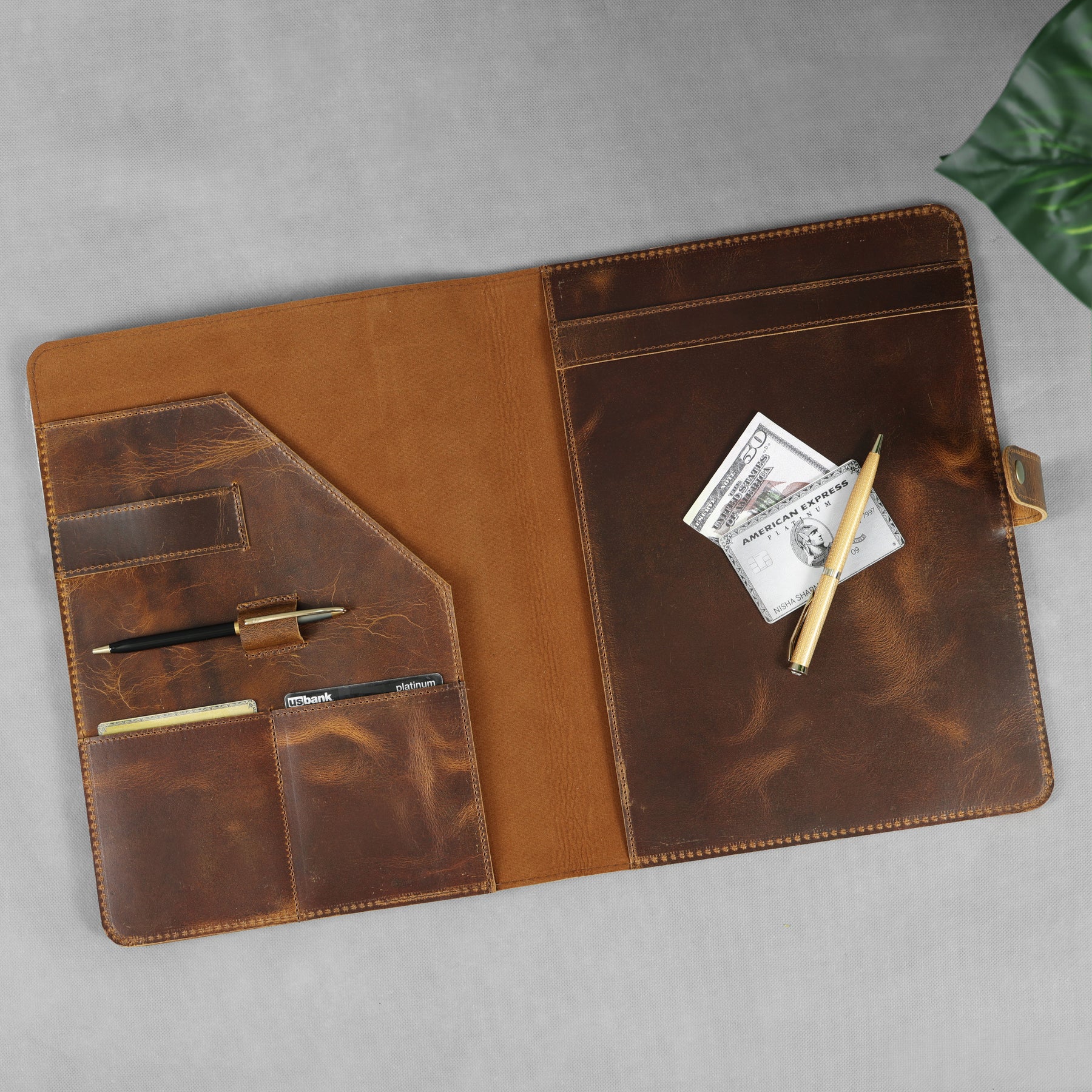 Our exclusive buffalo leather padfolio is expertly handcrafted and made of full grain water buffalo leather. It features a convenient snap strap on the front and has everything you need to stay organized and professional.